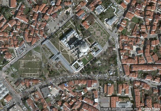 the square mosque with its single great dome and four slender minarets, dominates the skyline of the former ottoman capital of edirne. sinan, the most famous of ottoman architects in the 16th century, considered the complex, which includes madrasas (islamic schools), a covered market, clock house, outer courtyard and library, to be his best work. the interior decoration using iznik tiles from the peak period of their production testifies to an art form that remains unsurpassed in this material. the complex is considered to be the most harmonious expression ever achieved of the ottoman külliye, a group of buildings constructed around a mosque and managed as a single institution. |